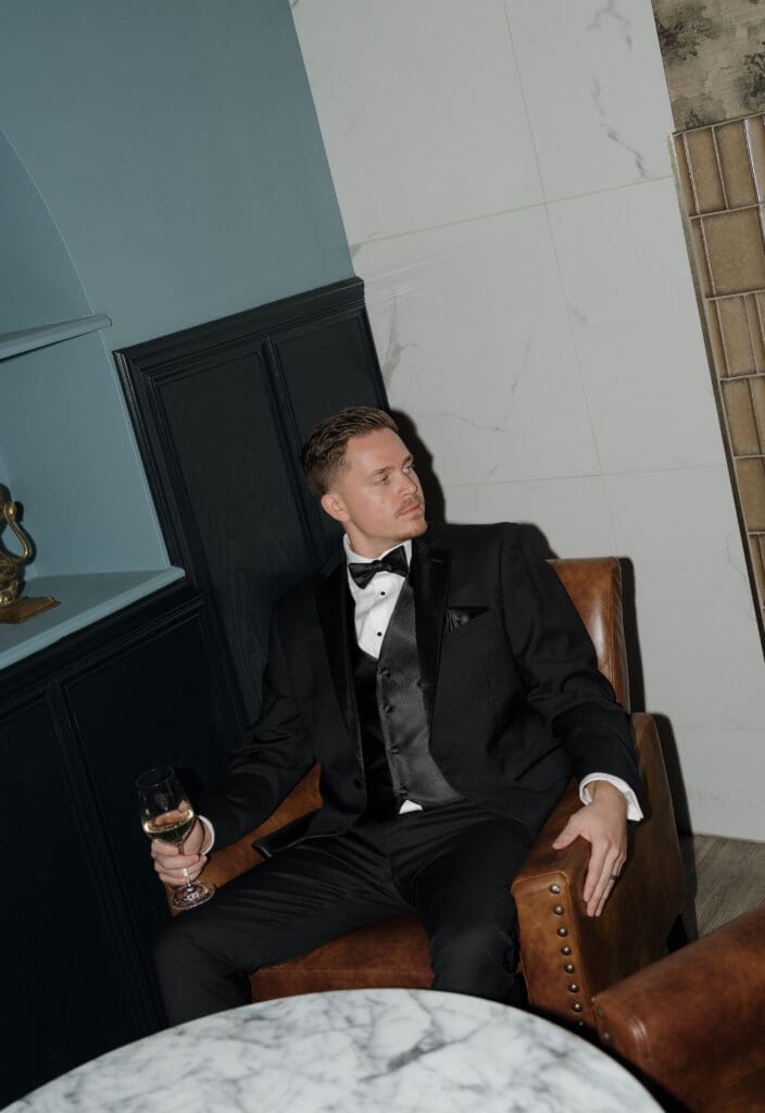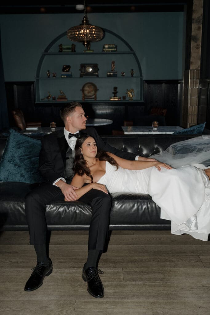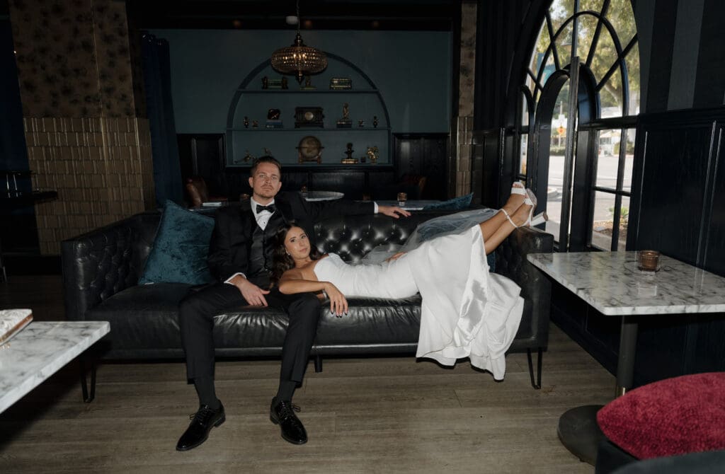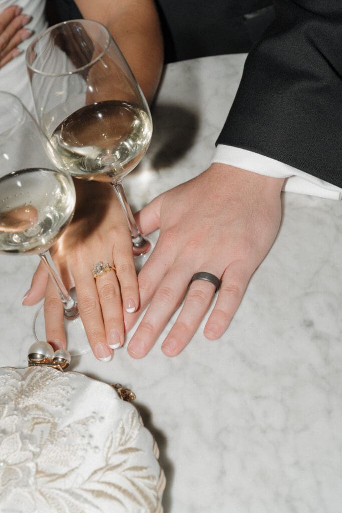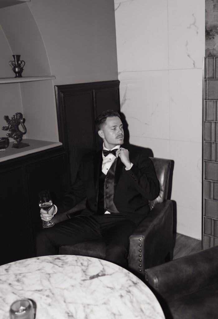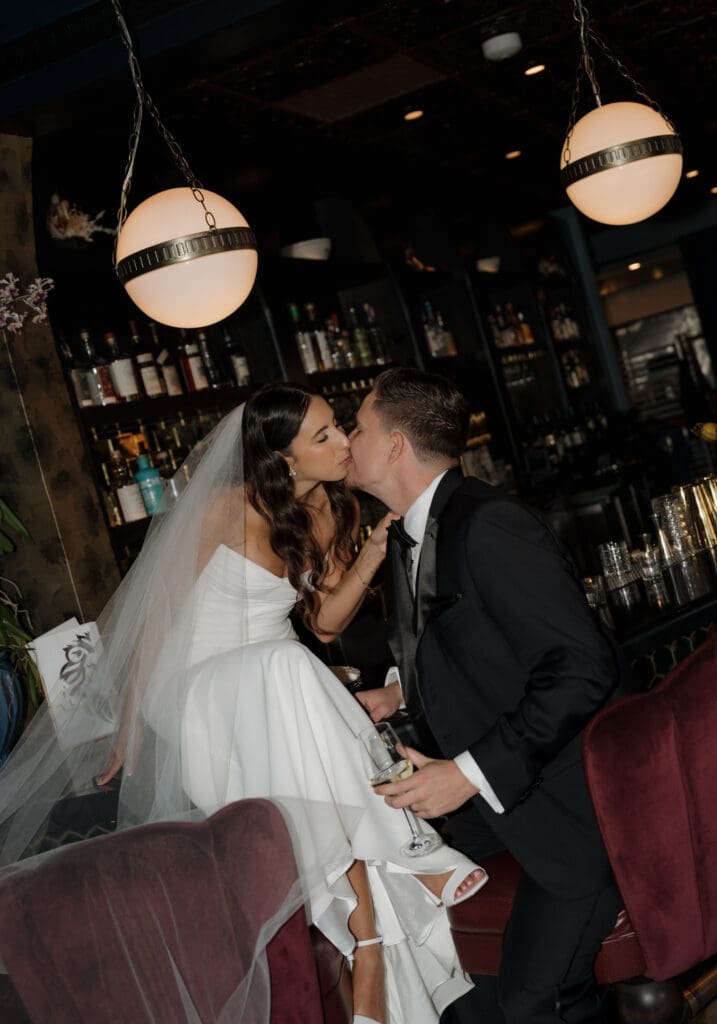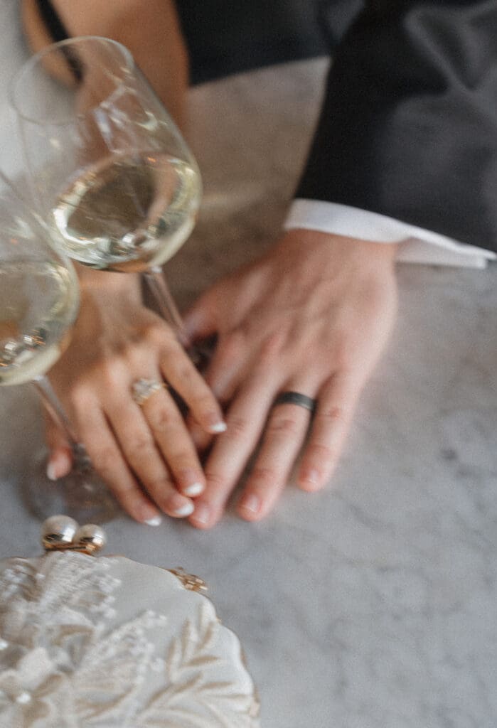Following M + D’s nuptials, the celebration continued with an intimate cocktail hour in Montecito. After their ceremony, we met at Lion’s Tale for a private toast to their new life together. Velvet textures, fun flash, and softly clinking glasses set the tone for an effortlessly elevated bridal session—equal parts refined and celebratory.