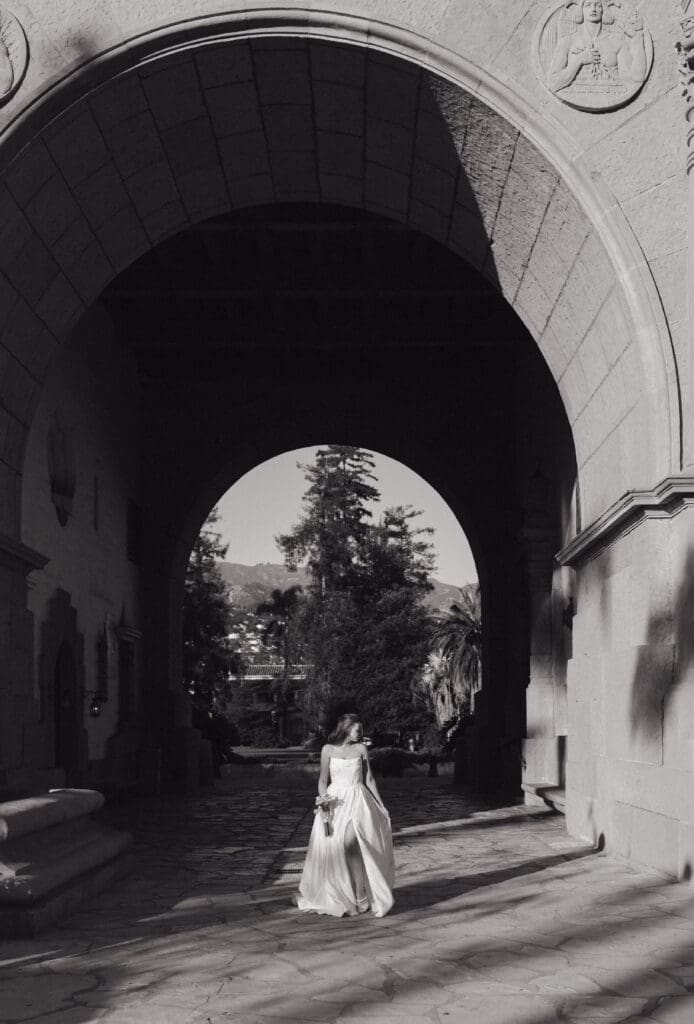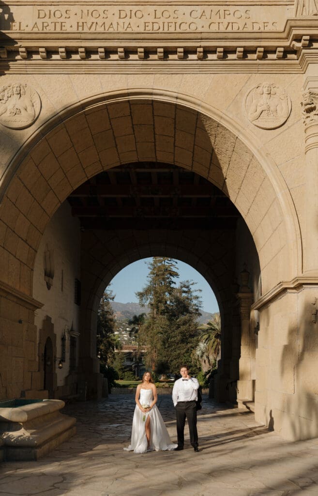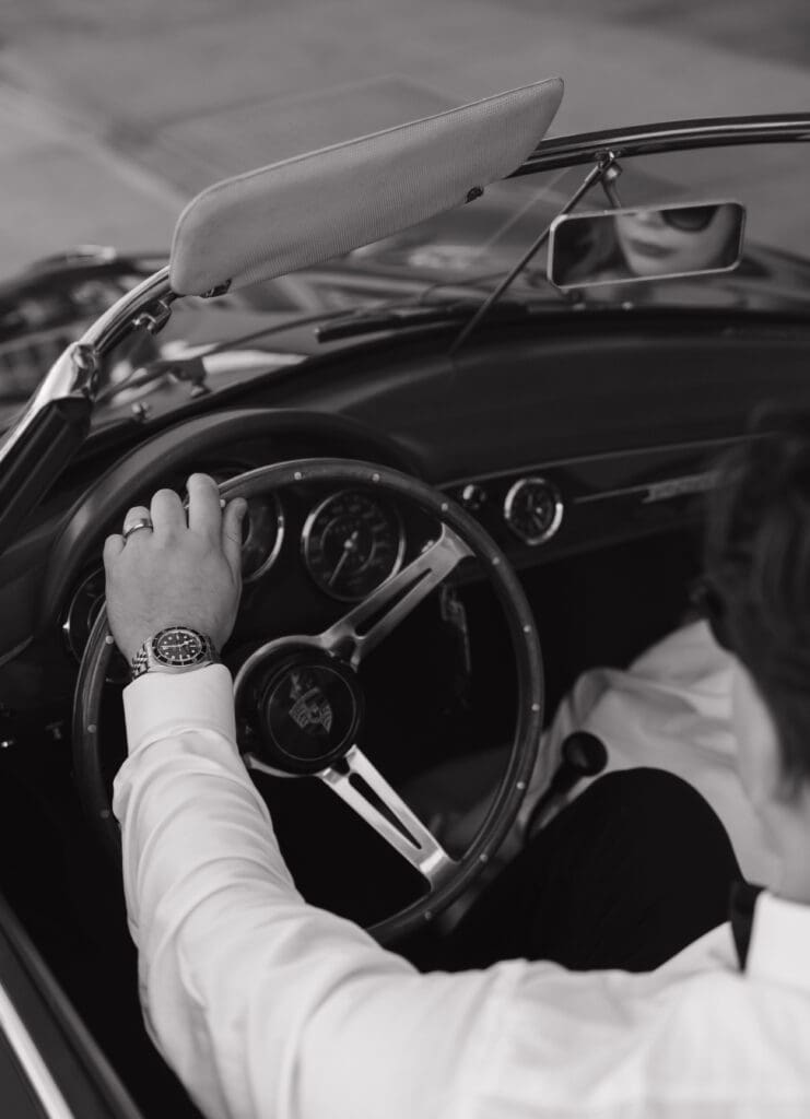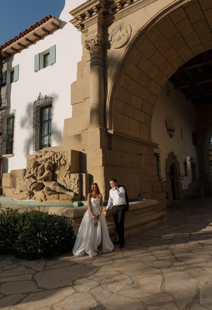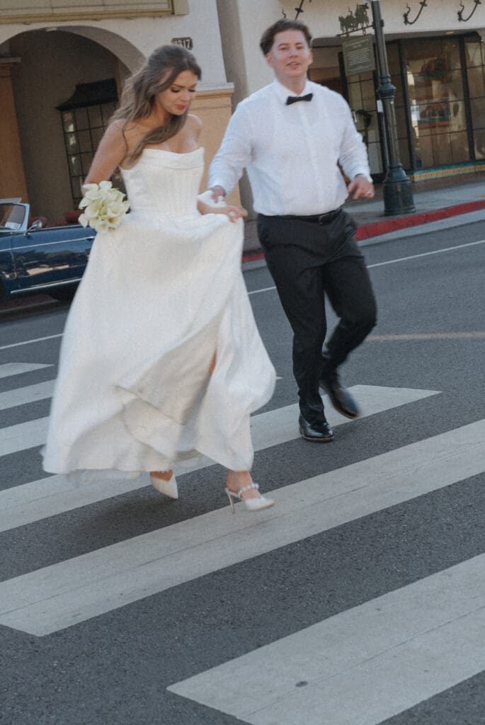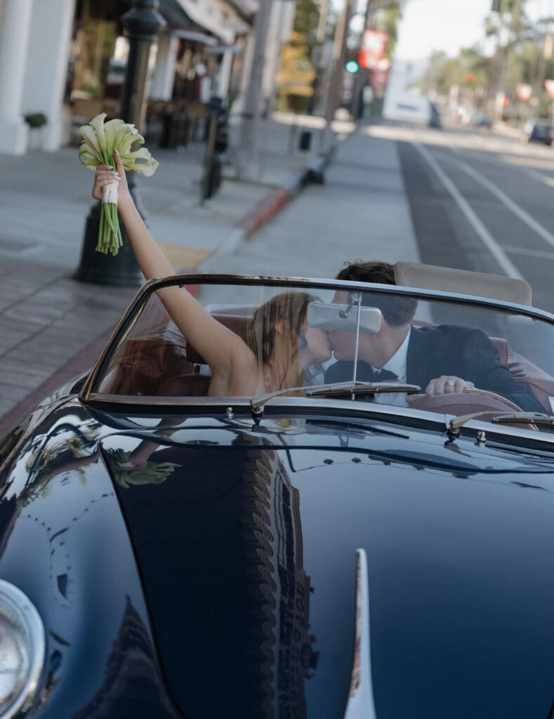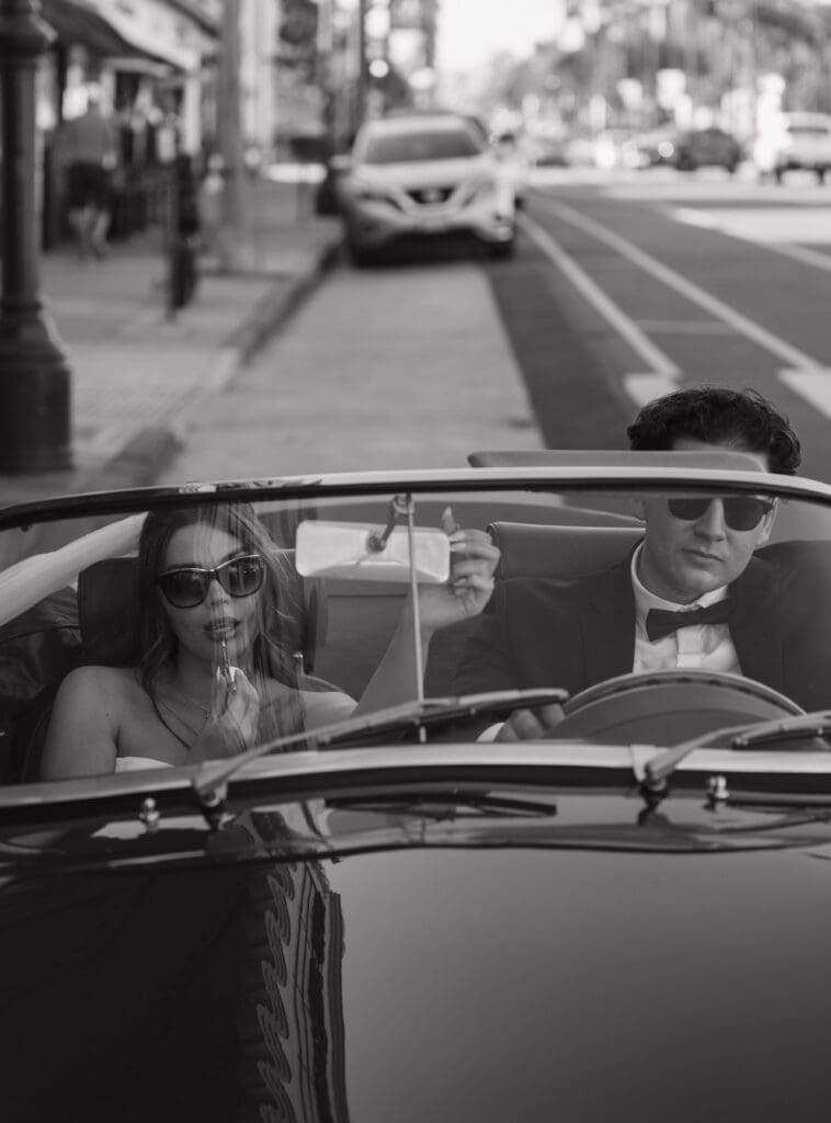 This is what an editorial elopement can look like: courthouse vows, a downtown stop beneath the Arlington marquee, cruising the coast in a vintage Porsche, and a champagne finish at Butterfly Beach. Proof that intimate can still feel elevated.