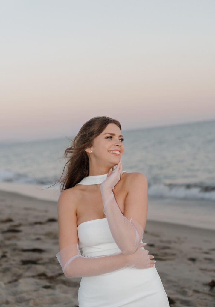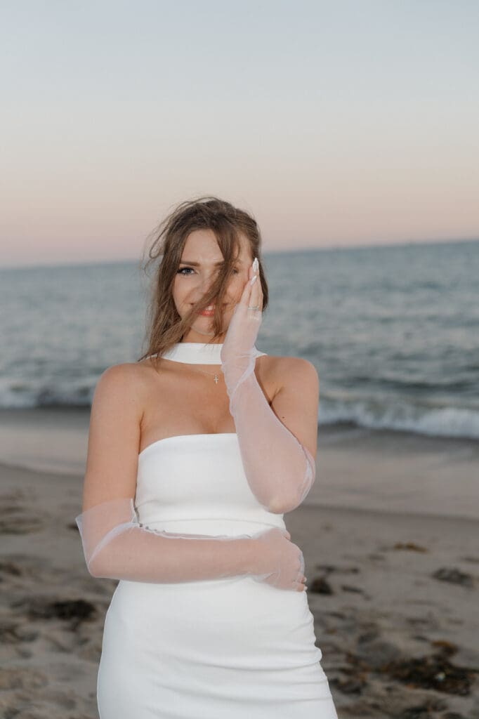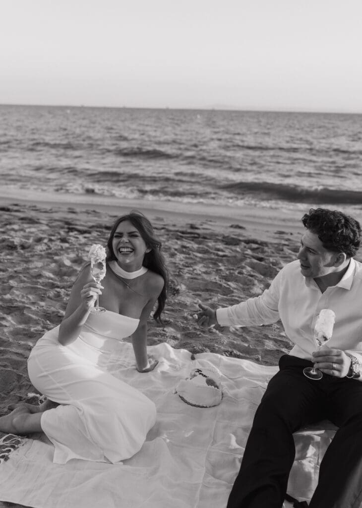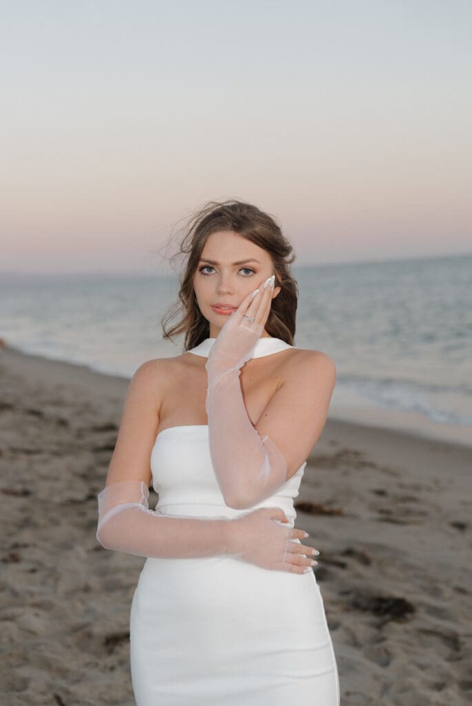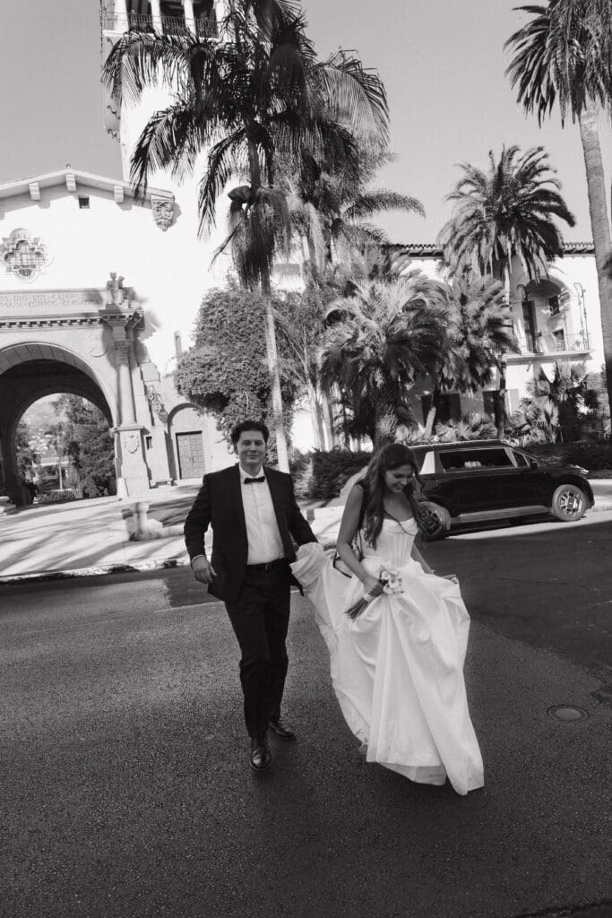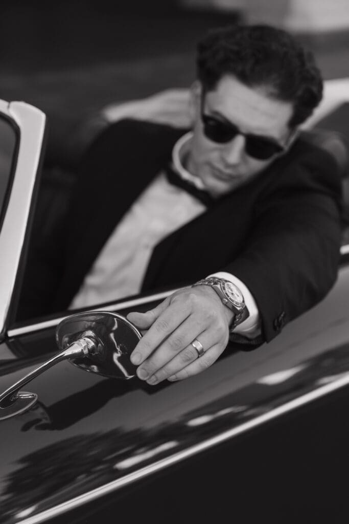 This is what an editorial elopement can look like: courthouse vows, a downtown stop beneath the Arlington marquee, cruising the coast in a vintage Porsche, and a champagne finish at Butterfly Beach. Proof that intimate can still feel elevated.